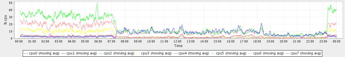 avg(cpu0) = 2.24 avg(cpu1) = 0.35 avg(cpu2) = 0.39 avg(cpu3) = 0.30 avg(cpu4) = 0.20 avg(cpu5) = 0.27 avg(cpu6) = 0.32 avg(cpu7) = 0.27