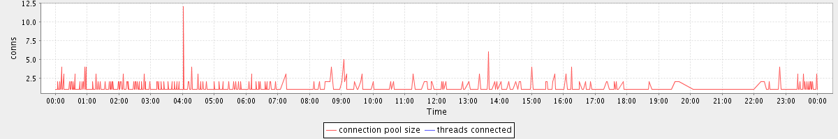 avg(connection pool size) = 0.66 avg(threads connected) = 0.00