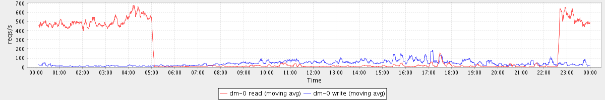avg(dm-0 read) = 144.62 avg(dm-0 write) = 41.01