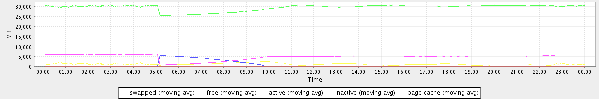 avg(swapped) = 0.25 avg(free) = 778.20 avg(active) = 29607.21 avg(inactive) = 1121.69 avg(page cache) = 4768.92