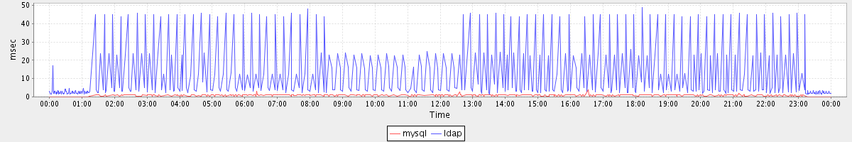 avg(mysql) = 0.27 avg(ldap) = 4.37