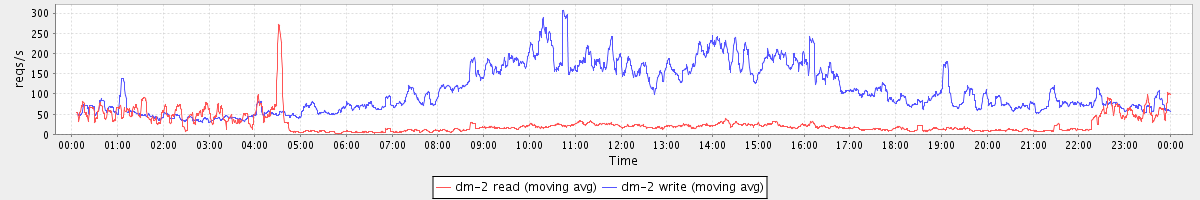 avg(dm-0 read) = 143.75 avg(dm-0 write) = 54.46