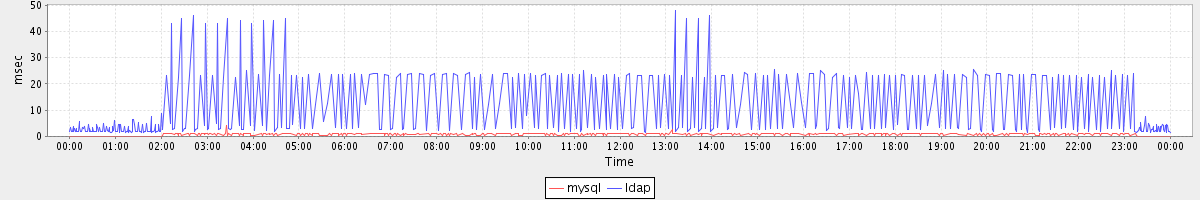 avg(mysql) = 0.30 avg(ldap) = 3.58
