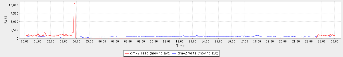 avg(dm-1 read) = 7.29 avg(dm-1 write) = 2.78