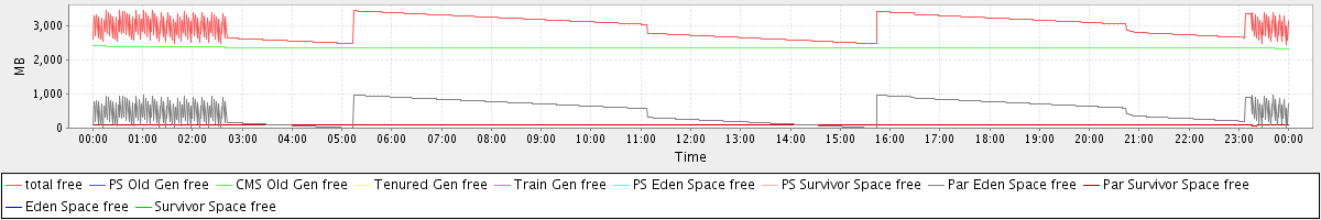 avg(total free) = 2953.46 avg(PS Old Gen free) = 0.00 avg(CMS Old Gen free) = 2365.38 avg(Tenured Gen free) = 0.00 avg(Train Gen free) = 0.00 avg(PS Eden Space free) = 0.00 avg(PS Survivor Space free) = 0.00 avg(Par Eden Space free) = 489.17 avg(Par Survivor Space free) = 98.91 avg(Eden Space free) = 0.00 avg(Survivor Space free) = 0.00