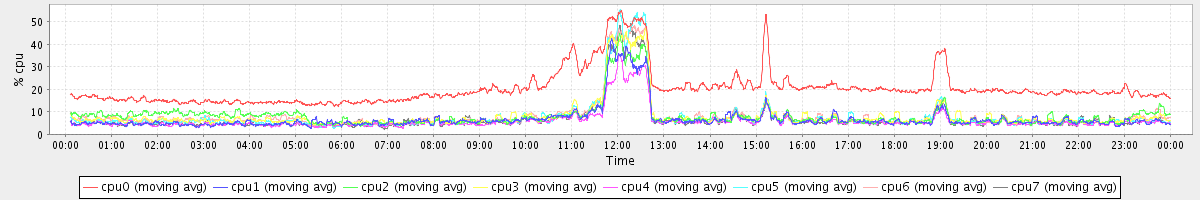avg(cpu0) = 1.11 avg(cpu1) = 0.07 avg(cpu2) = 0.13 avg(cpu3) = 0.07 avg(cpu4) = 0.06 avg(cpu5) = 0.05 avg(cpu6) = 0.08 avg(cpu7) = 0.04