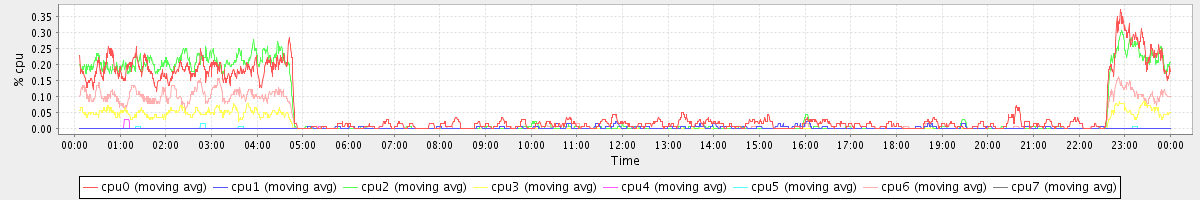 avg(cpu0) = 1.06 avg(cpu1) = 0.68 avg(cpu2) = 1.24 avg(cpu3) = 0.70 avg(cpu4) = 0.43 avg(cpu5) = 0.44 avg(cpu6) = 0.75 avg(cpu7) = 0.38