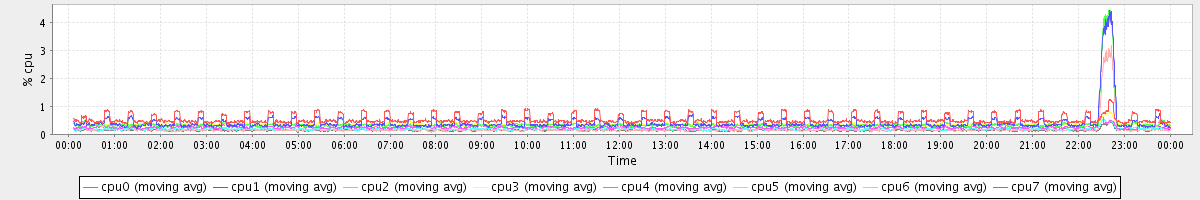 avg(cpu0) = 0.04 avg(cpu1) = 0.37 avg(cpu2) = 0.37 avg(cpu3) = 0.03 avg(cpu4) = 0.13 avg(cpu5) = 0.04 avg(cpu6) = 0.24 avg(cpu7) = 0.03