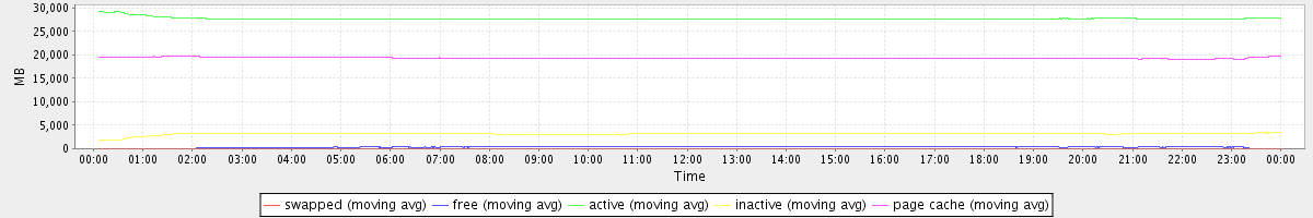 avg(swapped) = 0.25 avg(free) = 337.96 avg(active) = 27769.75 avg(inactive) = 3125.85 avg(page cache) = 19332.45