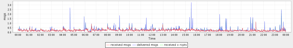 avg(received msgs) = 0.20 avg(delivered msgs) = 0.25 avg(received x rcpts) = 0.25