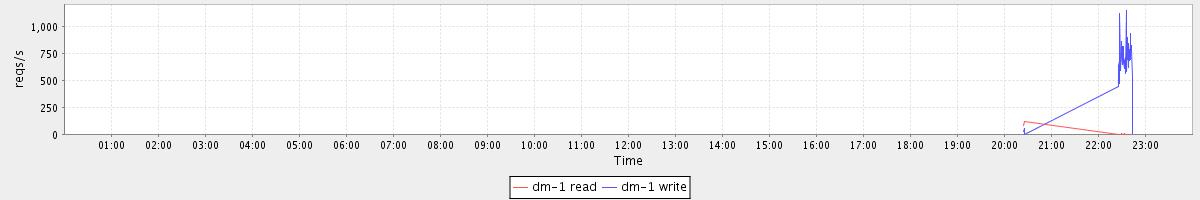 avg(dm-1 read) = 0.40 avg(dm-1 write) = 36.33
