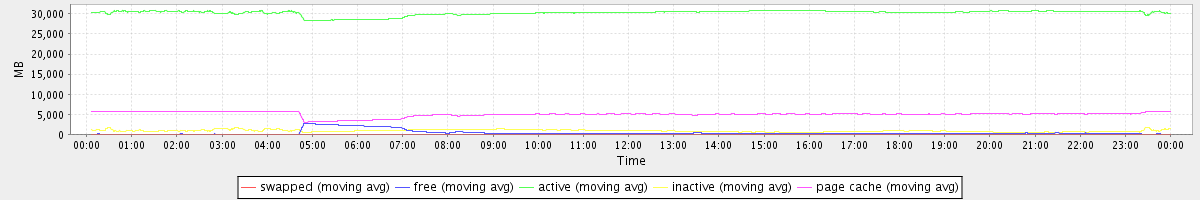 avg(swapped) = 0.25 avg(free) = 393.23 avg(active) = 30257.38 avg(inactive) = 889.53 avg(page cache) = 5020.85