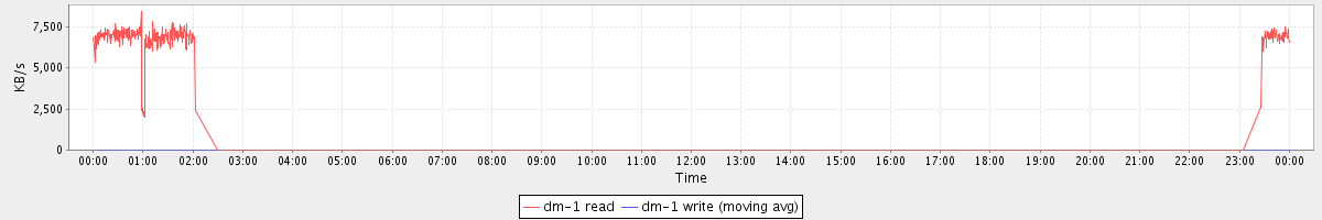 avg(dm-1 read) = 739.74 avg(dm-1 write) = 0.70