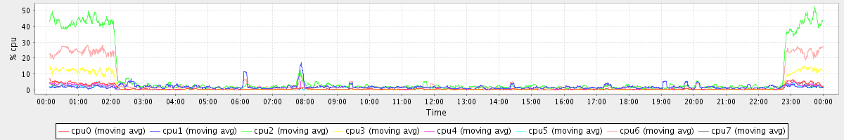 avg(cpu0) = 0.96 avg(cpu1) = 1.83 avg(cpu2) = 7.74 avg(cpu3) = 1.81 avg(cpu4) = 0.60 avg(cpu5) = 0.43 avg(cpu6) = 4.61 avg(cpu7) = 0.48