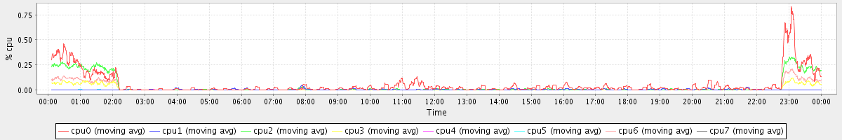 avg(cpu0) = 0.69 avg(cpu1) = 0.05 avg(cpu2) = 0.10 avg(cpu3) = 0.04 avg(cpu4) = 0.04 avg(cpu5) = 0.04 avg(cpu6) = 0.07 avg(cpu7) = 0.03