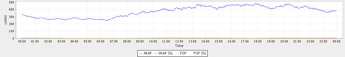Host zm04.stanford.edu: Mailboxd: Active Connections by Client Protocol