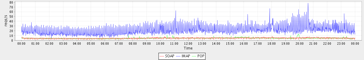 Host zm08.stanford.edu: Mailboxd: Request Rate by Client Protocol