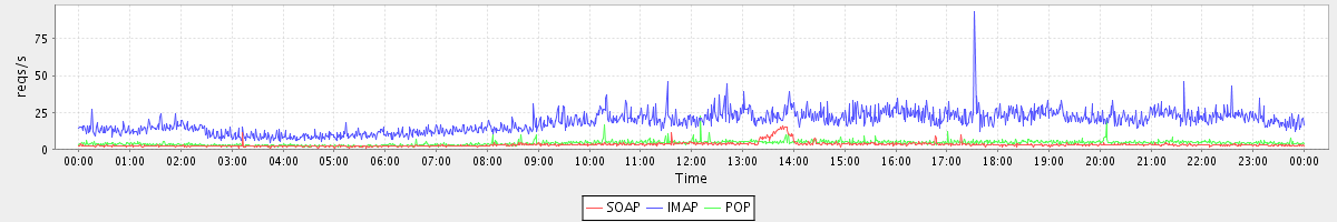 Host zm01.stanford.edu: Mailboxd: Request Rate by Client Protocol