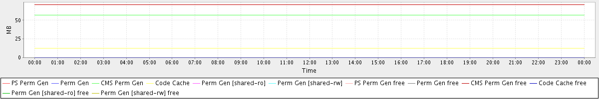 avg(PS Perm Gen) = 0.00 avg(Perm Gen) = 0.00 avg(CMS Perm Gen) = 57.16 avg(Code Cache) = 12.48 avg(Perm Gen [shared-ro]) = 0.00 avg(Perm Gen [shared-rw]) = 0.00 avg(PS Perm Gen free) = 0.00 avg(Perm Gen free) = 0.00 avg(CMS Perm Gen free) = 70.84 avg(Code Cache free) = 0.21 avg(Perm Gen [shared-ro] free) = 0.00 avg(Perm Gen [shared-rw] free) = 0.00