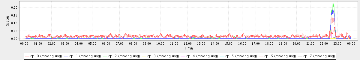 avg(cpu0) = 0.04 avg(cpu1) = 0.43 avg(cpu2) = 0.45 avg(cpu3) = 0.06 avg(cpu4) = 0.12 avg(cpu5) = 0.04 avg(cpu6) = 0.31 avg(cpu7) = 0.04