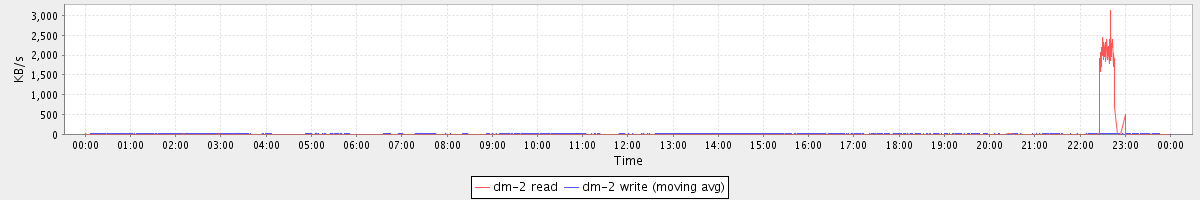 avg(dm-1 read) = 0.45 avg(dm-1 write) = 46.74