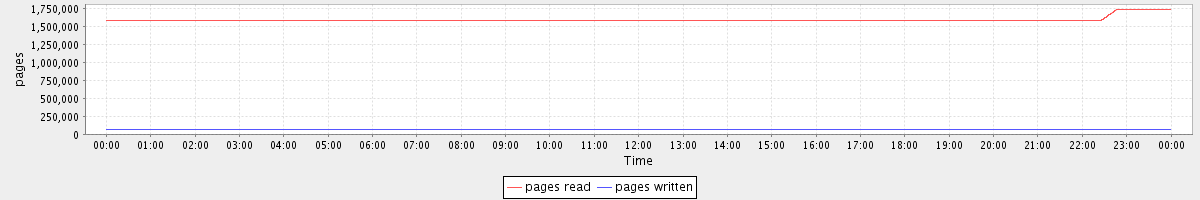 avg(pages read) = 1594435.86 avg(pages written) = 67834.44