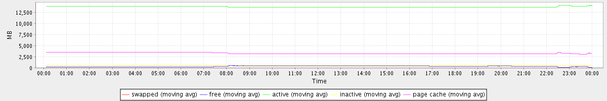 avg(swapped) = 0.25 avg(free) = 342.42 avg(active) = 13705.08 avg(inactive) = 522.02 avg(page cache) = 3298.75