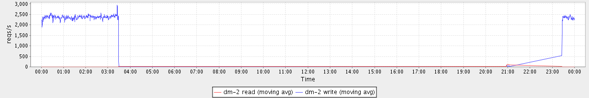 avg(dm-2 read) = 2.88 avg(dm-2 write) = 1594.42