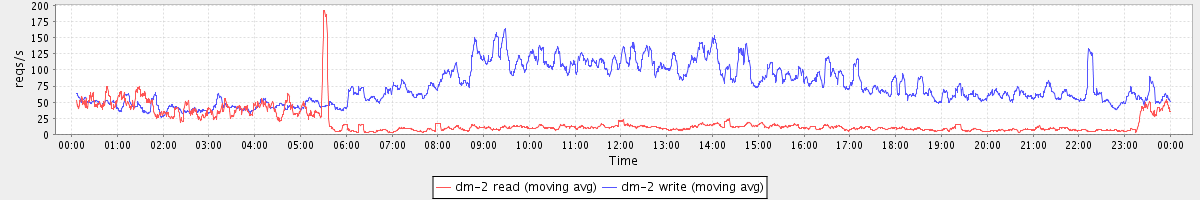 avg(dm-2 read) = 356.08 avg(dm-2 write) = 593.36
