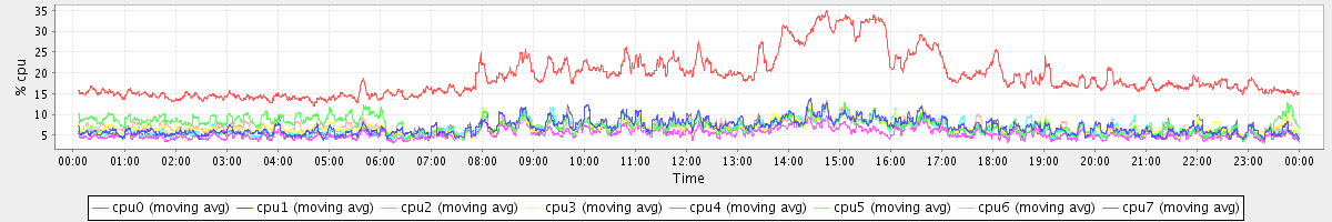 avg(cpu0) = 1.48 avg(cpu1) = 0.17 avg(cpu2) = 0.21 avg(cpu3) = 0.15 avg(cpu4) = 0.12 avg(cpu5) = 0.13 avg(cpu6) = 0.16 avg(cpu7) = 0.13