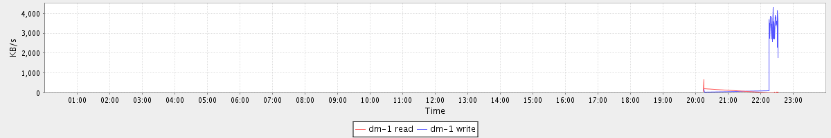 avg(dm-1 read) = 0.10 avg(dm-1 write) = 9.75