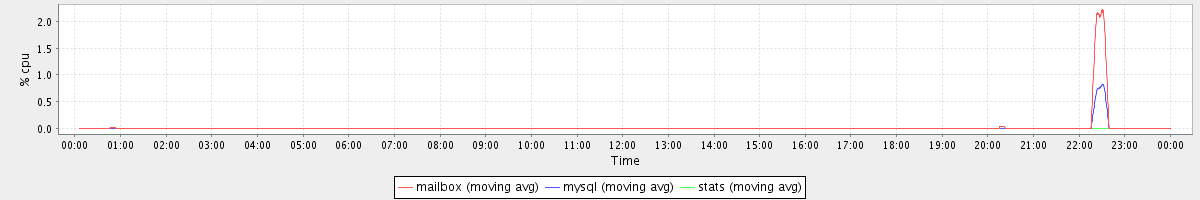 avg(mailbox) = 0.03 avg(mysql) = 0.01 avg(stats) = 0.00