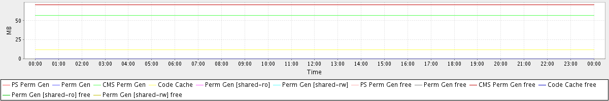 avg(PS Perm Gen) = 0.00 avg(Perm Gen) = 0.00 avg(CMS Perm Gen) = 57.14 avg(Code Cache) = 12.06 avg(Perm Gen [shared-ro]) = 0.00 avg(Perm Gen [shared-rw]) = 0.00 avg(PS Perm Gen free) = 0.00 avg(Perm Gen free) = 0.00 avg(CMS Perm Gen free) = 70.86 avg(Code Cache free) = 0.19 avg(Perm Gen [shared-ro] free) = 0.00 avg(Perm Gen [shared-rw] free) = 0.00