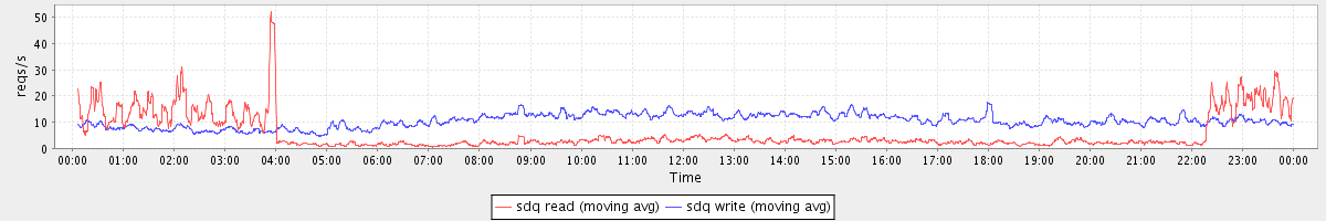 avg(sda read) = 1.11 avg(sda write) = 4.28