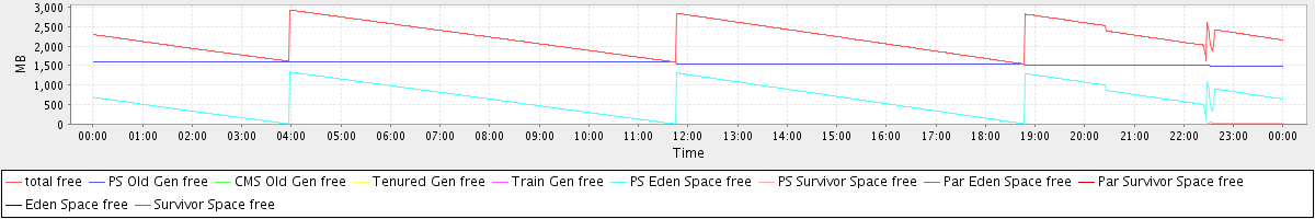 avg(total free) = 2213.90 avg(PS Old Gen free) = 1561.39 avg(CMS Old Gen free) = 0.00 avg(Tenured Gen free) = 0.00 avg(Train Gen free) = 0.00 avg(PS Eden Space free) = 650.67 avg(PS Survivor Space free) = 1.84 avg(Par Eden Space free) = 0.00 avg(Par Survivor Space free) = 0.00 avg(Eden Space free) = 0.00 avg(Survivor Space free) = 0.00