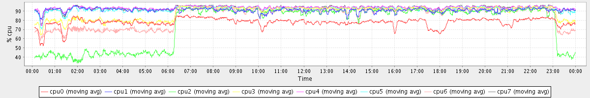 avg(cpu0) = 77.94 avg(cpu1) = 91.10 avg(cpu2) = 75.75 avg(cpu3) = 88.64 avg(cpu4) = 93.80 avg(cpu5) = 92.48 avg(cpu6) = 84.35 avg(cpu7) = 93.34