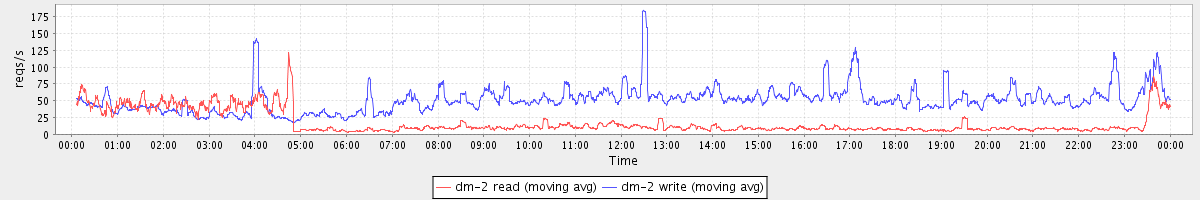 avg(dm-0 read) = 119.55 avg(dm-0 write) = 19.49