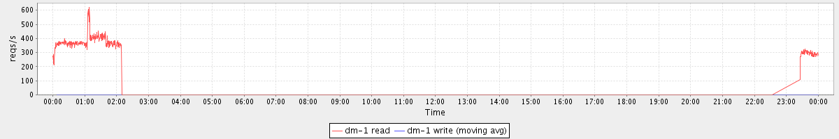 avg(dm-1 read) = 743.31 avg(dm-1 write) = 0.64