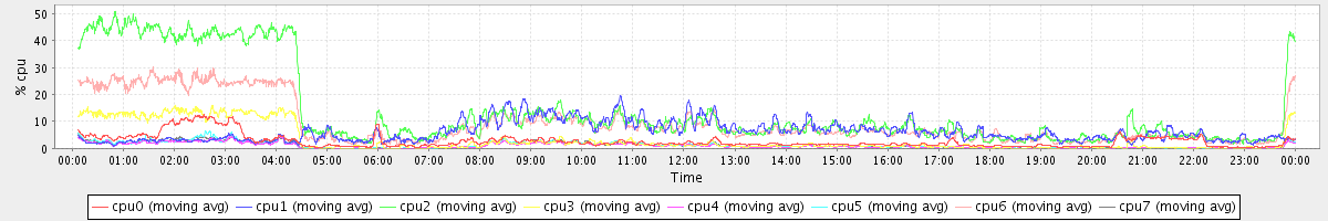 avg(cpu0) = 1.72 avg(cpu1) = 0.25 avg(cpu2) = 0.29 avg(cpu3) = 0.15 avg(cpu4) = 0.11 avg(cpu5) = 0.13 avg(cpu6) = 0.21 avg(cpu7) = 0.14