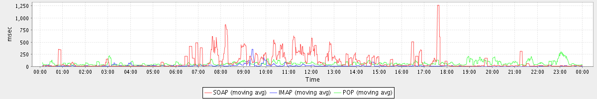 Host zm05.stanford.edu: Mailboxd: Response Time by Client Protocol