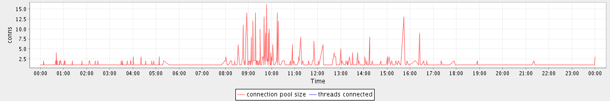 avg(connection pool size) = 0.71 avg(threads connected) = 0.00