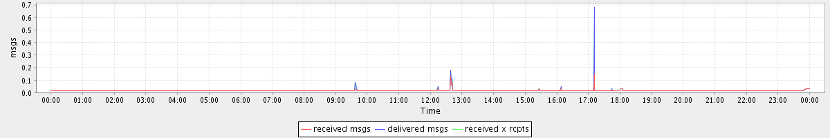 avg(received msgs) = 0.01 avg(delivered msgs) = 0.01 avg(received x rcpts) = 0.01