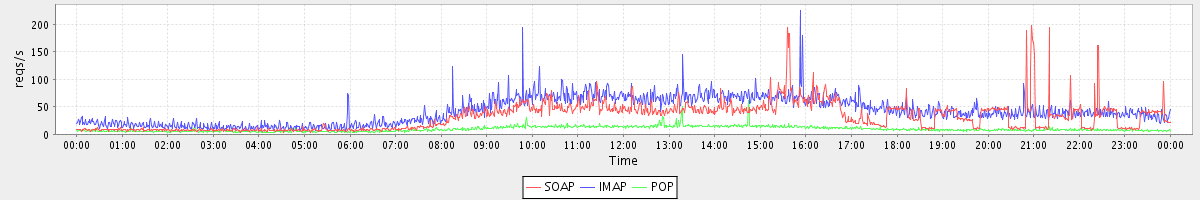 Host zm09.stanford.edu: Mailboxd: Request Rate by Client Protocol