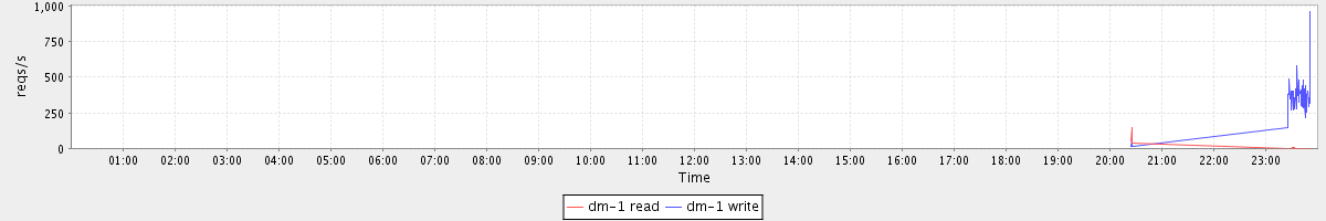 avg(dm-1 read) = 0.44 avg(dm-1 write) = 27.71