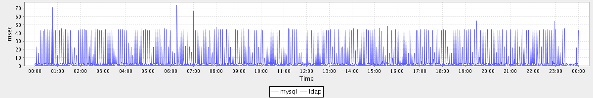 avg(mysql) = 0.22 avg(ldap) = 8.37