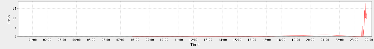 max(GetMsgRequest) = 6.00 max(GetAccountRequest) = 13.00 max(GetFreeBusyRequest) = 5.00 max(GetMiniCalRequest) = 9.00 max(SearchCalendarResourcesRequest) = 5.00 max(NoOpRequest) = 5.00 max(ModifyAccountRequest) = 7.00 max(AuthRequest) = 13.00 max(SearchRequest) = 12.00 max(GetFolderRequest) = 14.00