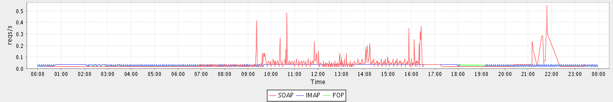 Host zm02-int.stanford.edu: Mailboxd: Request Rate by Client Protocol