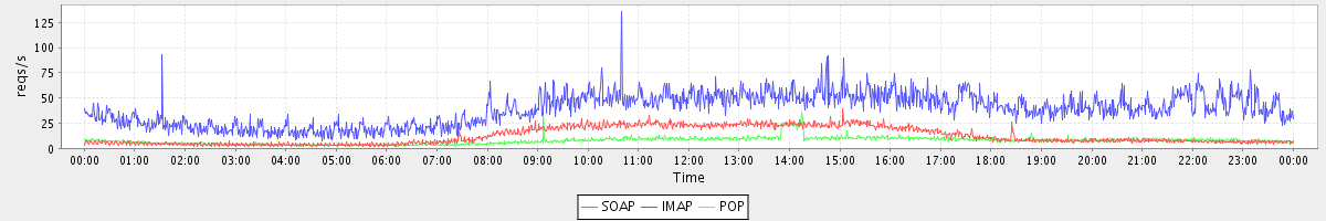 Host zm03.stanford.edu: Mailboxd: Request Rate by Client Protocol