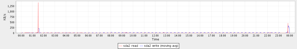 avg(sda2 read) = 0.84 avg(sda2 write) = 7.30