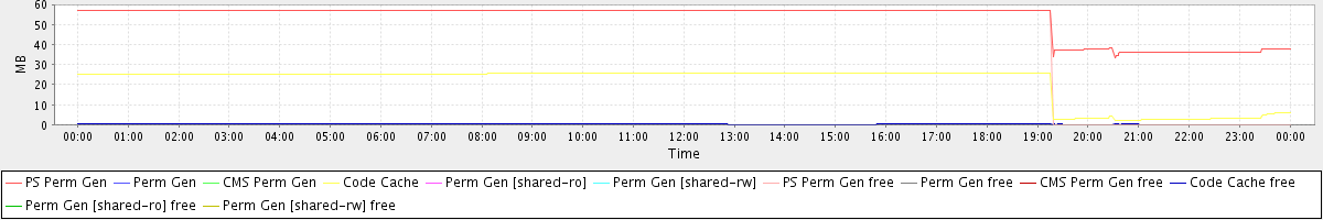 avg(PS Perm Gen) = 53.09 avg(Perm Gen) = 0.00 avg(CMS Perm Gen) = 0.00 avg(Code Cache) = 21.14 avg(Perm Gen [shared-ro]) = 0.00 avg(Perm Gen [shared-rw]) = 0.00 avg(PS Perm Gen free) = 45.79 avg(Perm Gen free) = 0.00 avg(CMS Perm Gen free) = 0.00 avg(Code Cache free) = 0.20 avg(Perm Gen [shared-ro] free) = 0.00 avg(Perm Gen [shared-rw] free) = 0.00